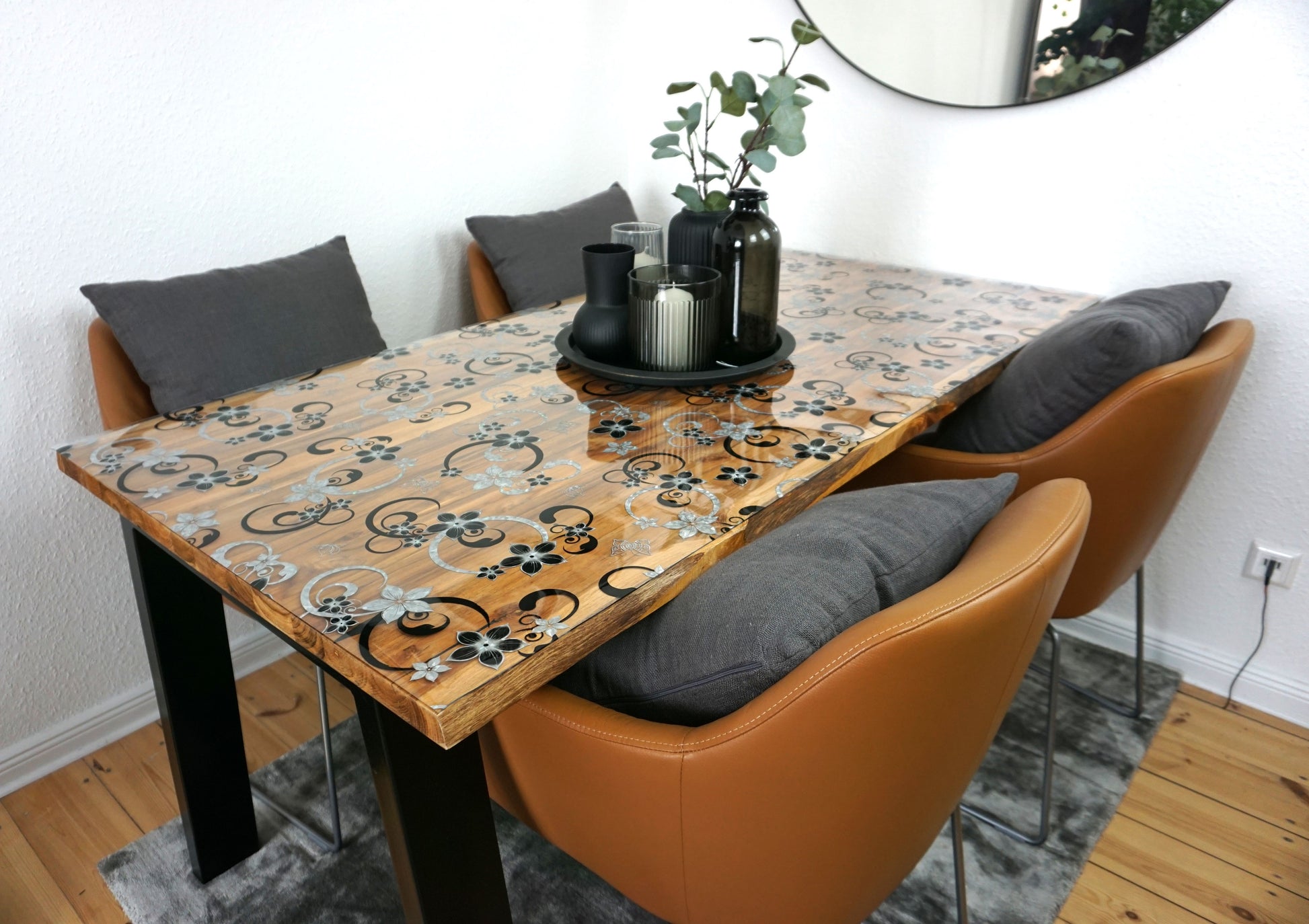 Die Tischfolie ist durch ihre Muster sehr ästhetisch und passt sich durch ihre Flexibilität Ihrem Tisch wie eine zweite Haut an. Daher kommt ihr hochwertiger Esstisch oder der stilvolle Couchtisch trotzdem voll zur Geltung.